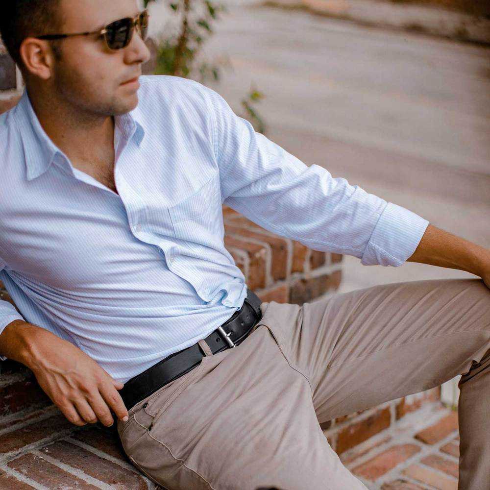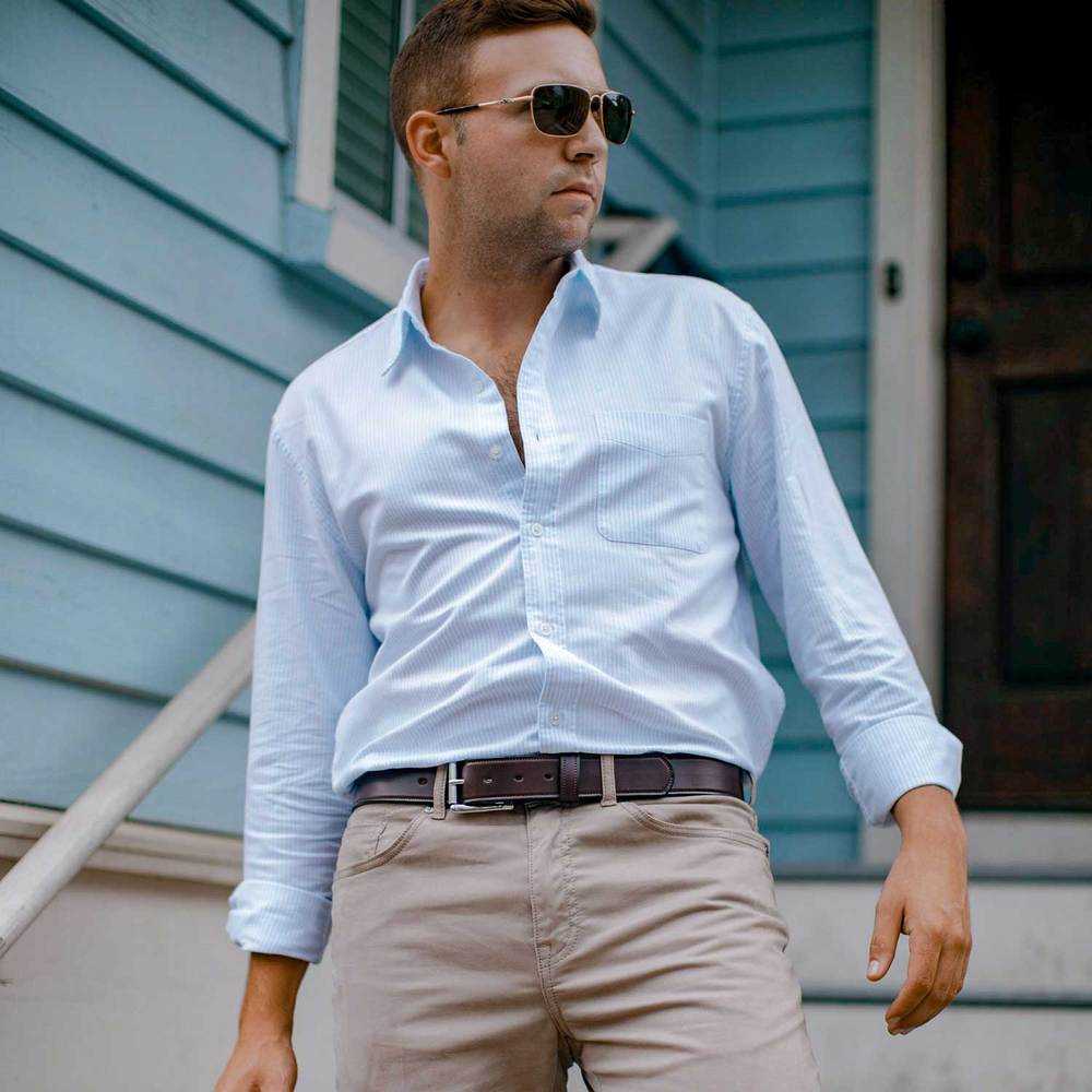 To maintain the top-quality features of this belt, we top it off with premium hardware. We use our more refined stainless steel roller buckle for easy buckling and unbuckling. The superior quality stainless steel buckle costs six times more than a standard plated steel buckle, but we wanted nothing but the best for the Canyon Belt.